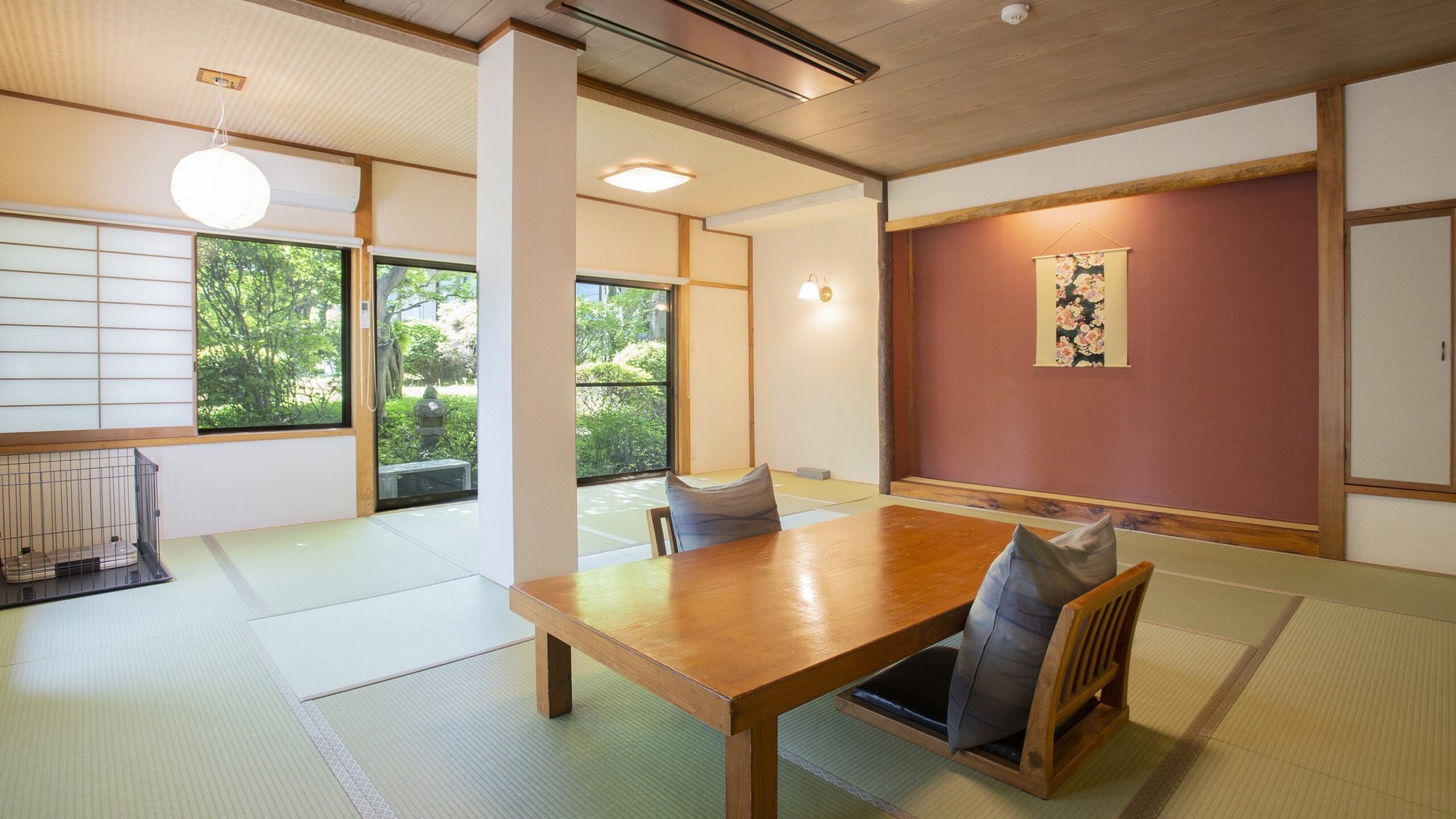 四万温泉 ペットと泊まれる旅館 三国園はペットを家族の一員としてお迎えしてくれる温泉旅館!客室の畳はペット用に特別なものを使用しているため気兼ねなく過ごせます!
