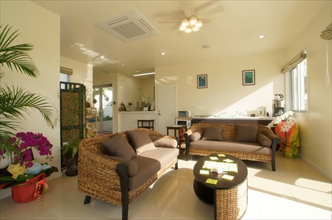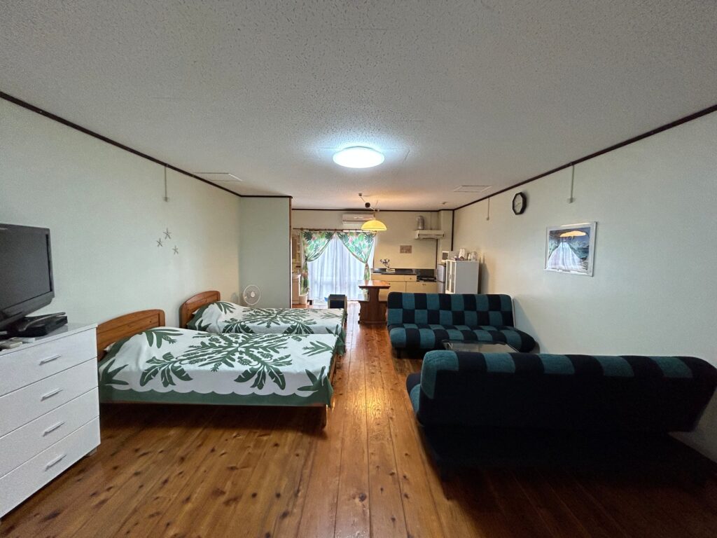 B&B カトルは空港から車で5分のハワイアンテイストの2部屋だけの静かな宿。広いワンルーム洋室20畳以上、自炊設備完備で家族や友人グループにオススメ!